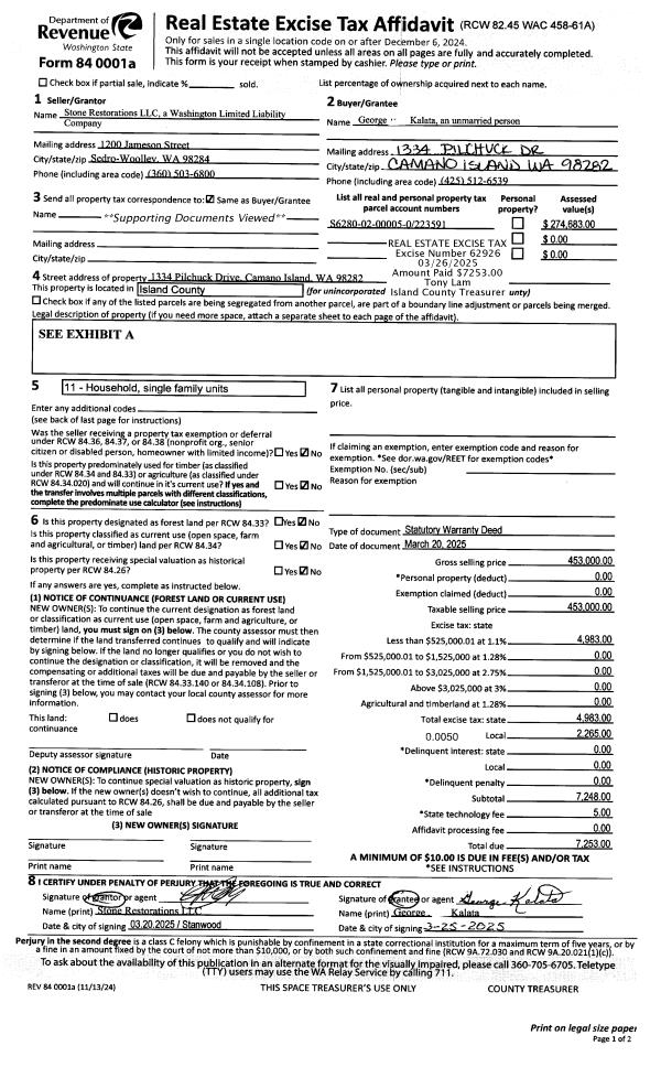 | Mailing Address: | TABITHA D'ANN WALCUTT 931 DONALD AVE OAK HARBOR, WA 98277 | % Ownership: | 100.0000000000% |