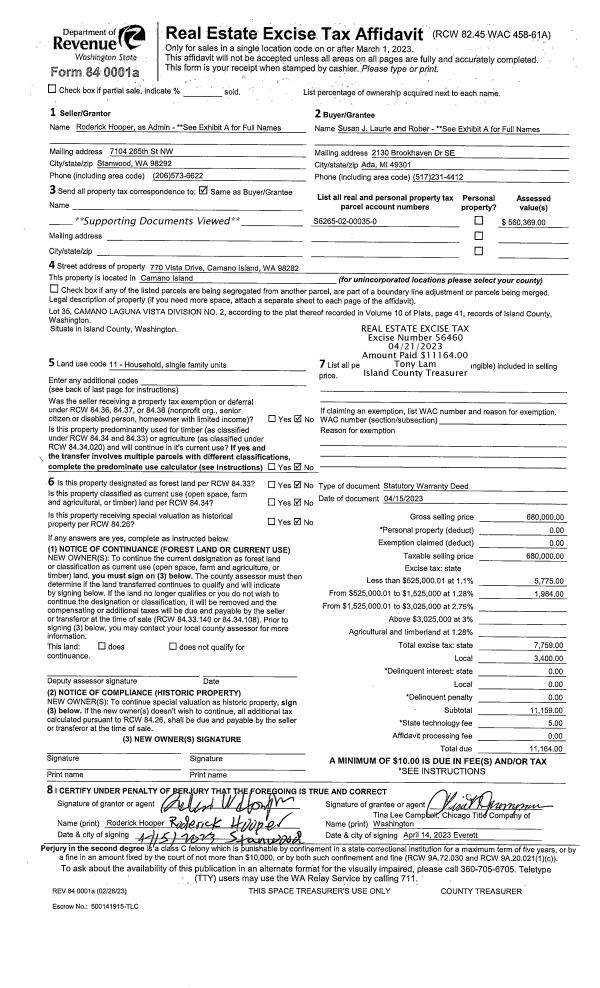 | 1 | 06/20/2019 | WD | Warranty Deed | CITY OF OAK HARBOR | M&K REAL ESTATE HOLDINGS LLC | | | $0.00 | 39108 | 4465905 |