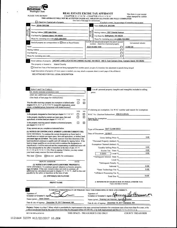 | Mailing Address: | 1034 SHAWN AVE OAK HARBOR, WA 98277 | % Ownership: | 100.0000000000% |