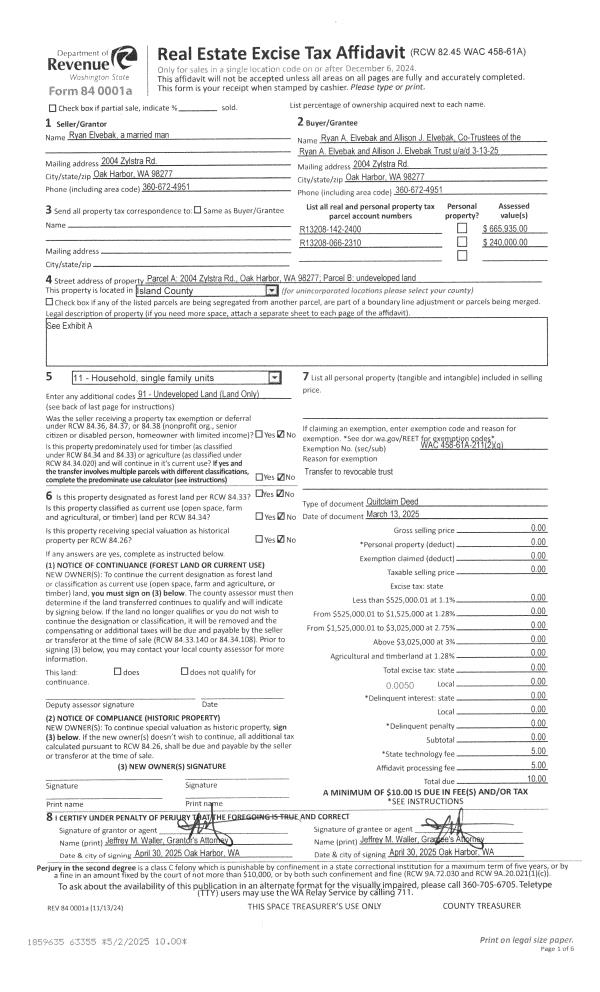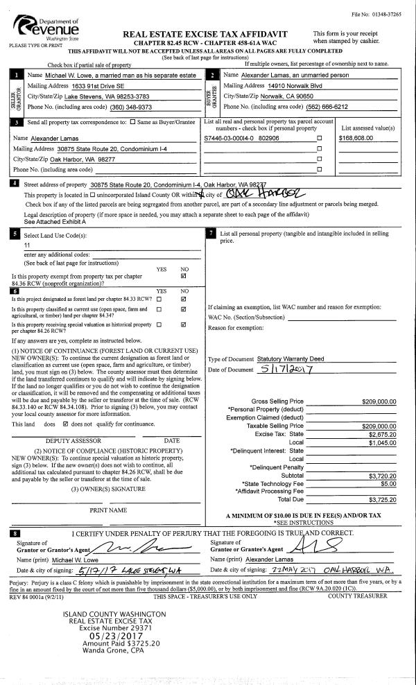 | Mailing Address: | 1022 SHAWN AVE OAK HARBOR, WA 98277 | % Ownership: | 100.0000000000% |