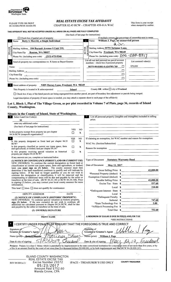 | 7 | 07/01/2005 | WD | Warranty Deed | BIGGERSTAFF, ANNA M | HELGESON, ROGER W | | | $4,500.00 | 53236 | 4139940 |