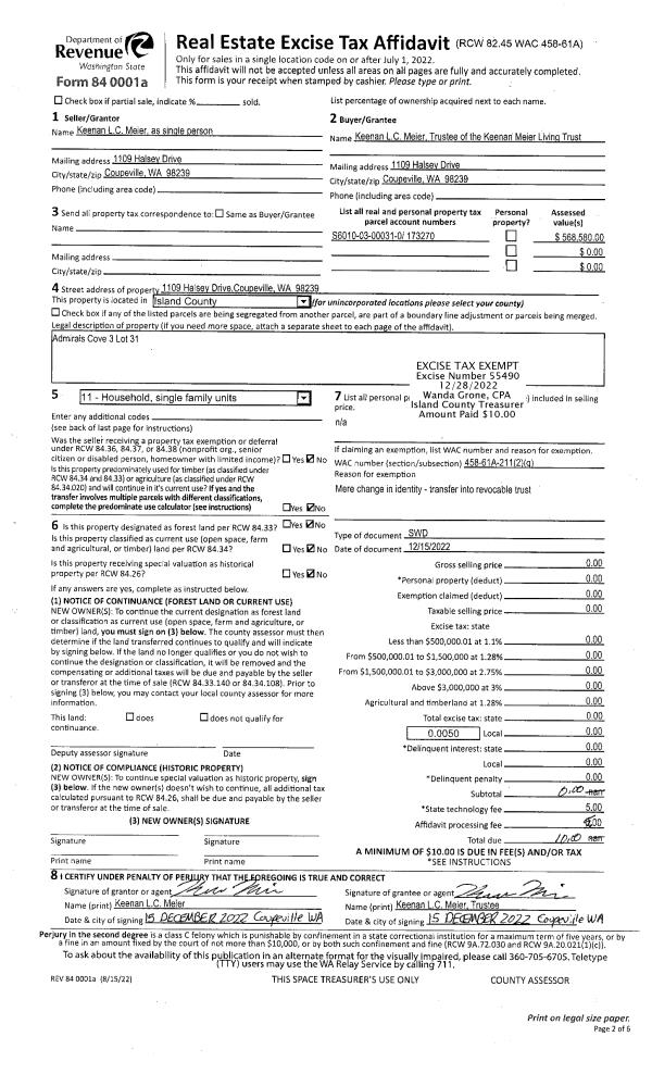 | Mailing Address: | MORGAN ZIRWAS 1023 DIANE AVE OAK HARBOR, WA 98277-8225 | % Ownership: | 100.0000000000% |