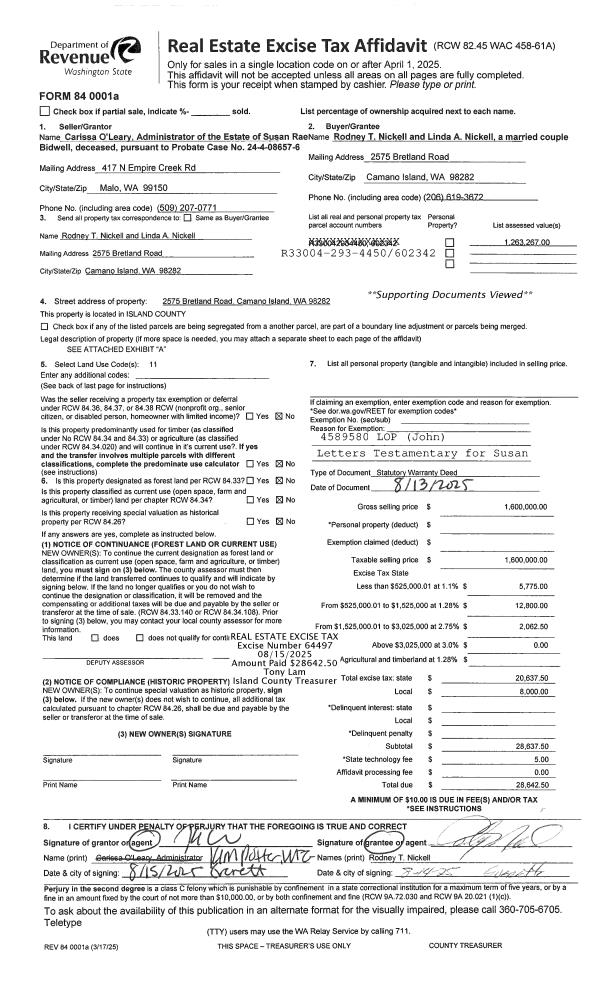 | Mailing Address: | 4389 VANDERWELL RD OAK HARBOR, WA 98277 | % Ownership: | 100.0000000000% |