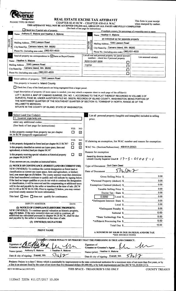 | 7 | 06/08/2017 | QCD | Quit Claim Deed | AQUINO, JUSTO M | AQUINO, JUSTO M | | | $0.00 | 29726 | 4424222 |