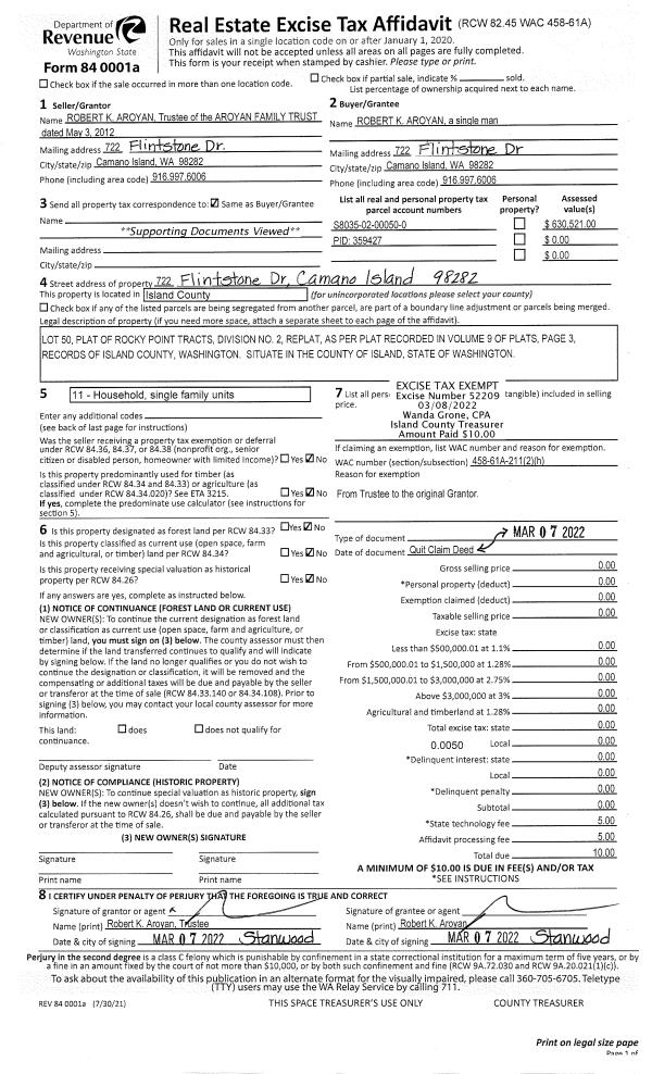 | Mailing Address: | CLARA DRAYTON 1591 MARK ST OAK HARBOR, WA 98277 | % Ownership: | 100.0000000000% |