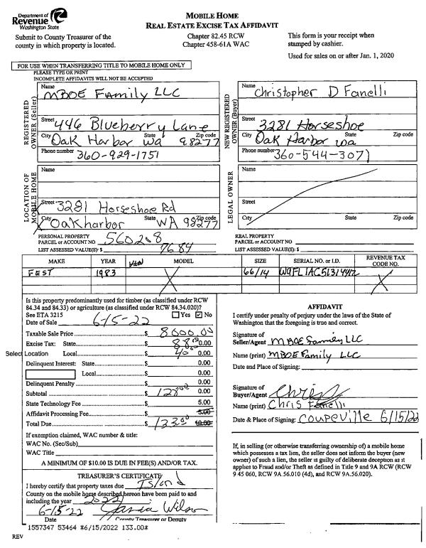 | Mailing Address: | 1142 DONALD AVE OAK HARBOR, WA 98277 | % Ownership: | 100.0000000000% |