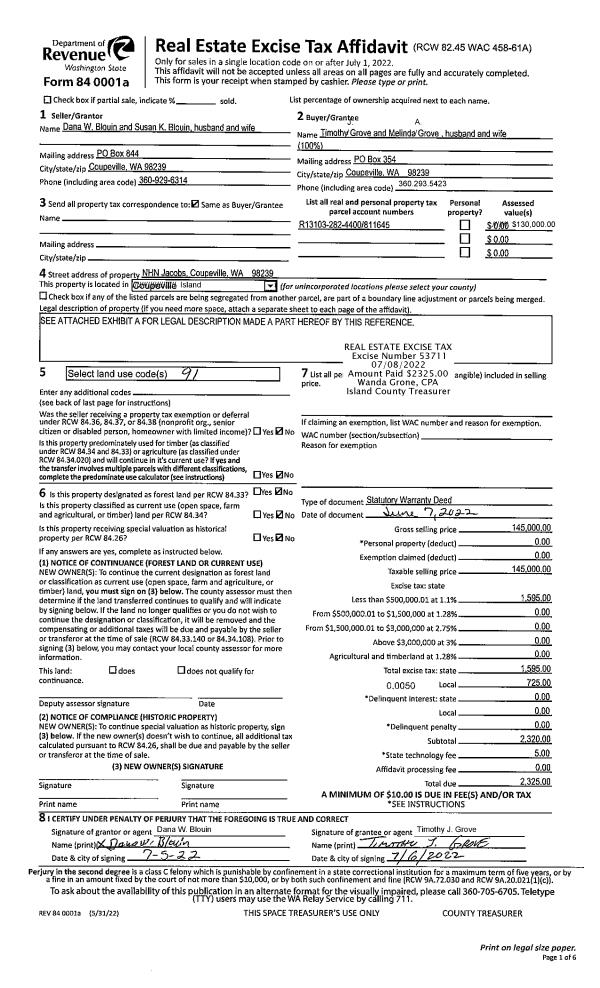 | Mailing Address: | TANYA M HANSON & ROBERT L WAKE 742 WALL ST COUPEVILLE, WA 98239 | % Ownership: | 100.0000000000% |