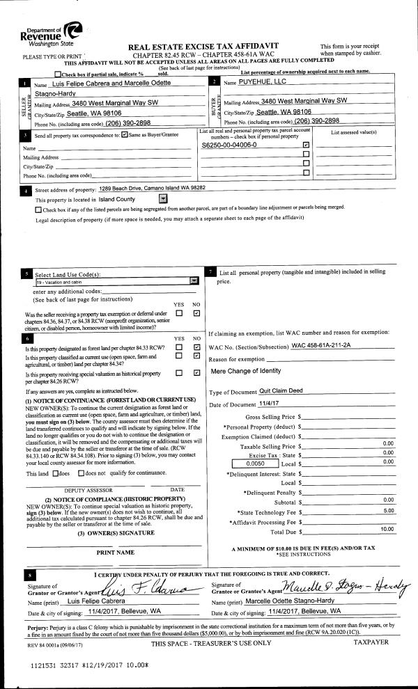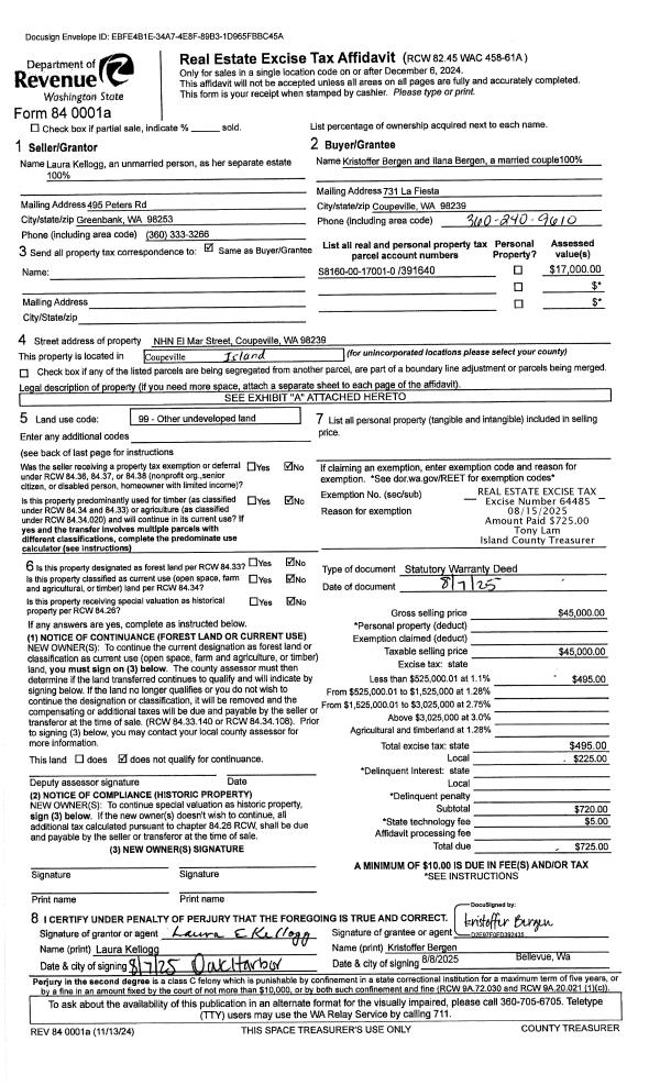 | Mailing Address: | MARY BETH EELKEMA 851 W BLUEWATER LN OAK HARBOR, WA 98277 | % Ownership: | 100.0000000000% |
