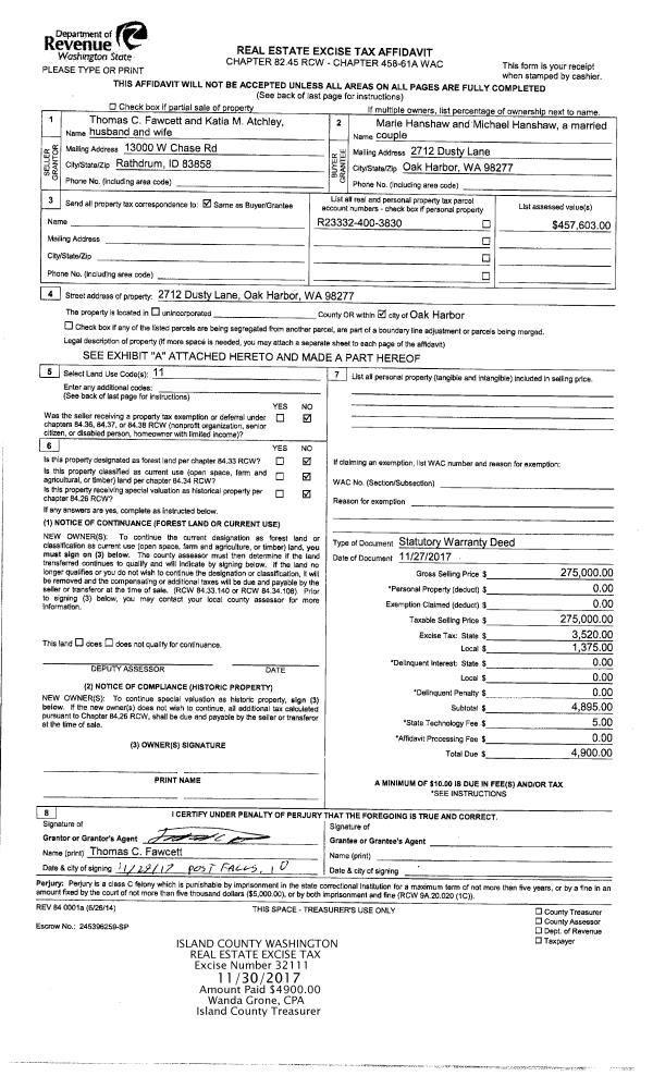 | Mailing Address: | 318 SE PIONEER WAY #194 OAK HARBOR, WA 98277 | % Ownership: | 100.0000000000% |