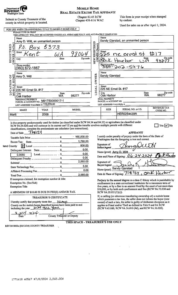 | Mailing Address: | JADE HETTICK 2335 HAPPY LN OAK HARBOR, WA 98277 | % Ownership: | 100.0000000000% |