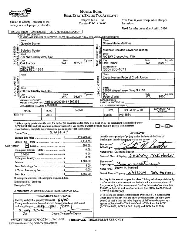 | Mailing Address: | 2339 HAPPY LN OAK HARBOR, WA 98277-8857 | % Ownership: | 100.0000000000% |