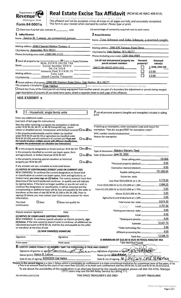 | Mailing Address: | 2332 HAPPY LN OAK HARBOR, WA 98277 | % Ownership: | 100.0000000000% |