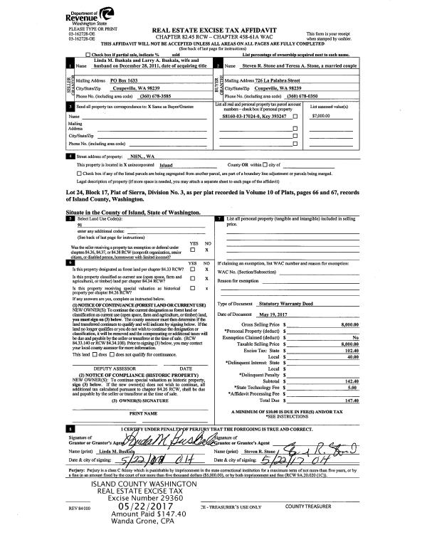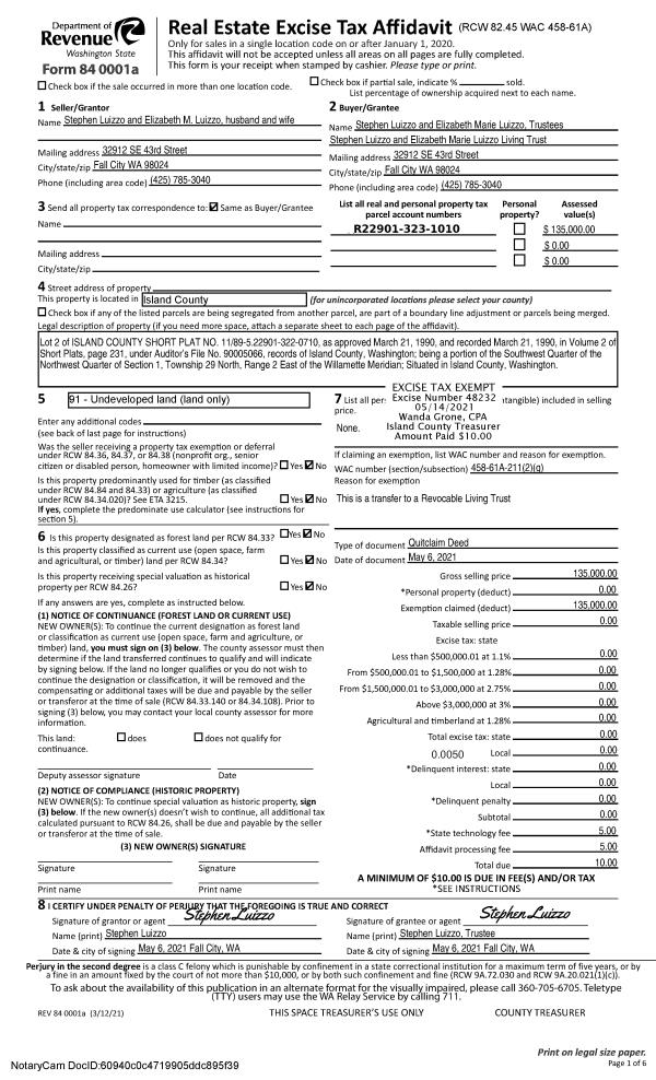 | 1 | 08/21/2024 | QCD | Quit Claim Deed | EXCHANGE ACCOMMODATION TITLEHOLDER II, INC | SANDY HOOK BEACH HOUSE WHIDBEY, LLC | | | $10.00 | 61047 | 4576152 |