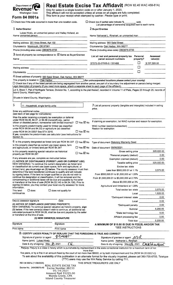 | Tax Area: | 710 - APPRAISER-S Whid Schl Dist, outside Langley, improved & 1 acre or less | Land Use Code | 11 |