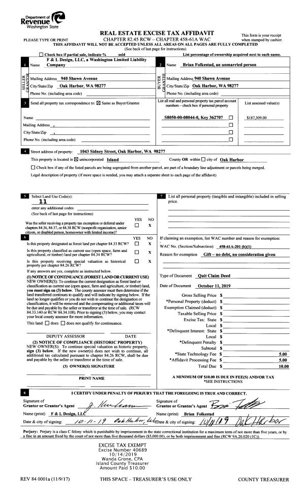 | 1 | 10/01/2019 | QCD | Quit Claim Deed | FULLER, FLOYD | ATWOOD TTEE, JULIA | | | $0.00 | 40538 | 4472596 |