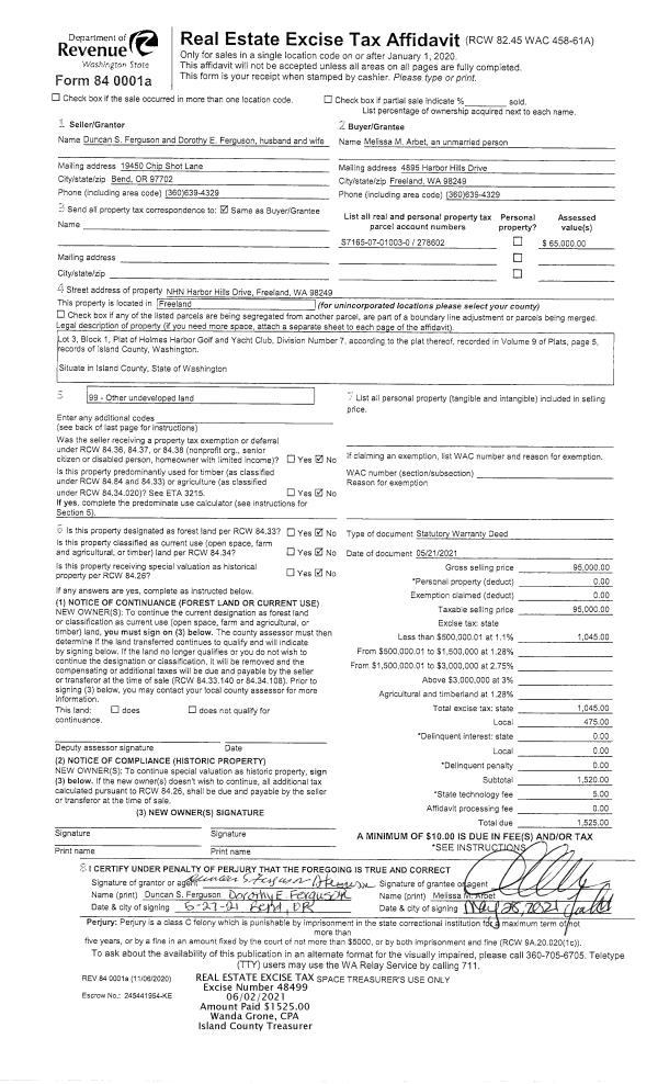 | Tax Area: | 719 - APPRAISER-S Whid Schl Dist, outside Langley, vacant & 50 acres or less | Land Use Code | 99 |
