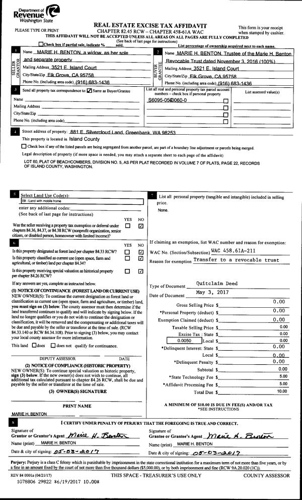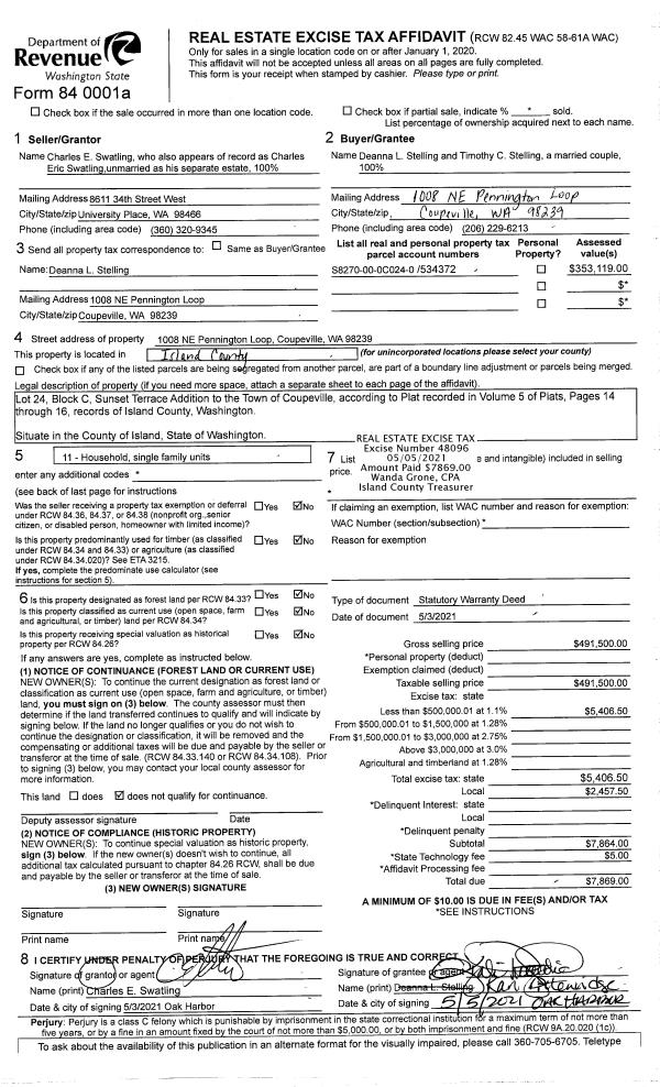 | Mailing Address: | 4119 SCATCHET VIEW DR CLINTON, WA 98236 | % Ownership: | 100.0000000000% |