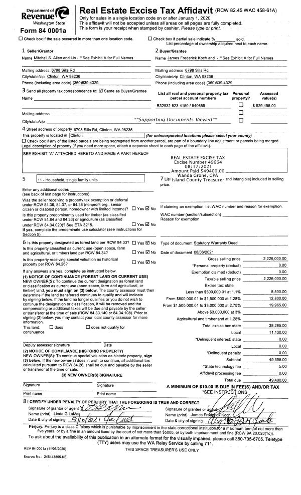 | Mailing Address: | 8224 SANDY HOOK DR CLINTON, WA 98236-8938 | % Ownership: | 100.0000000000% |