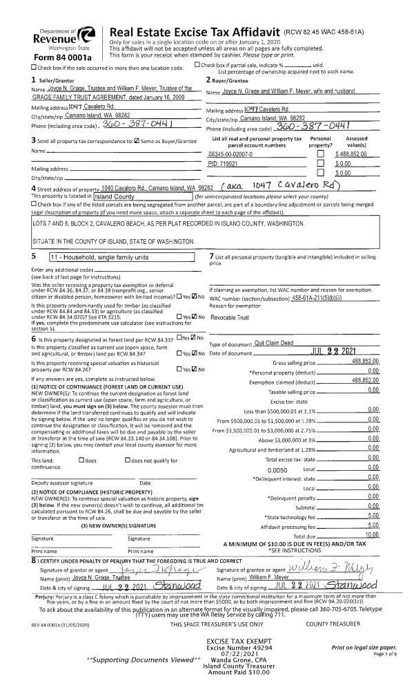| Mailing Address: | 8281 SANDY HOOK DR CLINTON, WA 98236 | % Ownership: | 100.0000000000% |