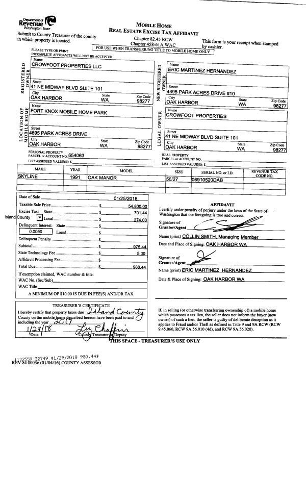 | Mailing Address: | PO BOX 125 COUPEVILLE, WA 98239 | % Ownership: | 100.0000000000% |