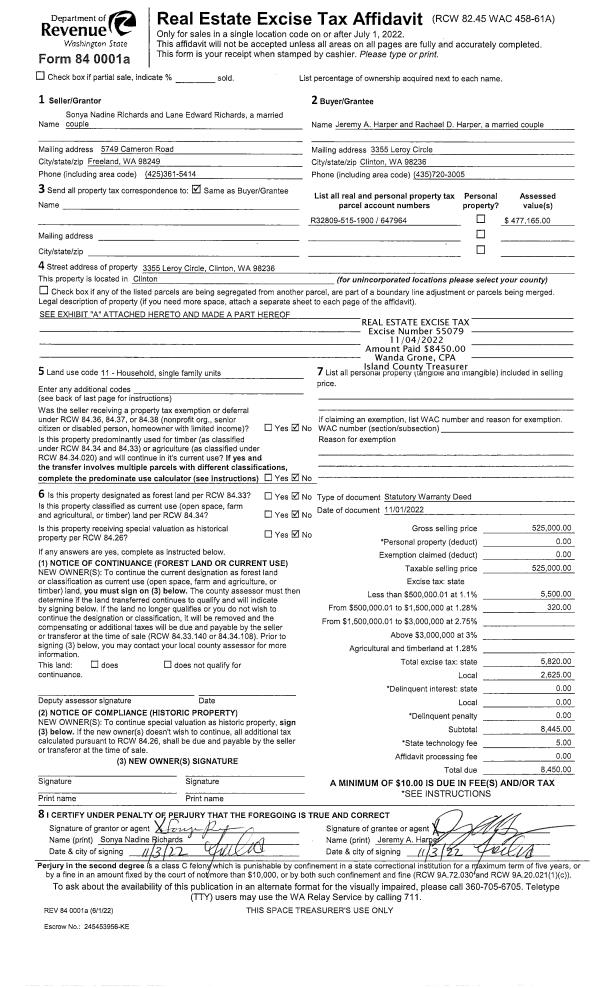 | Mailing Address: | CANDACE H. SCHRAMM 8260 BAYSHORE DRIVE CLINTON, WA 98236 | % Ownership: | 100.0000000000% |