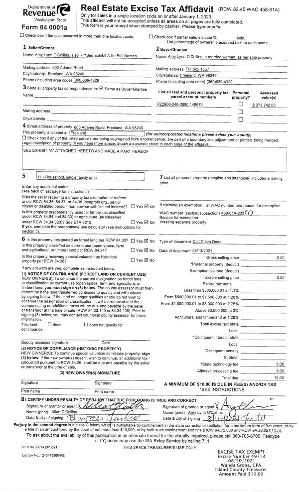 | Mailing Address: | 8224 SANDY HOOK DR CLINTON, WA 98236-8938 | % Ownership: | 100.0000000000% |