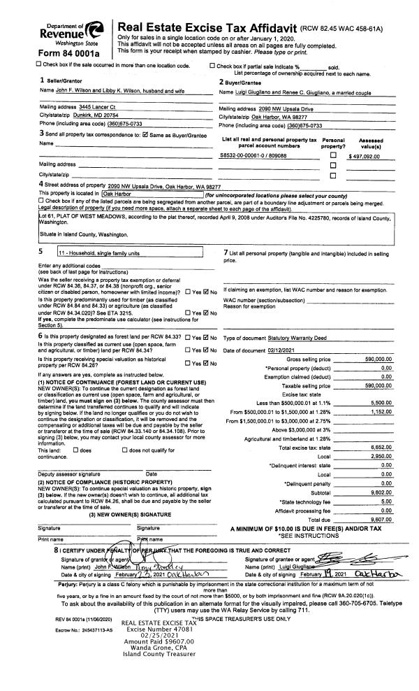 | Tax Area: | 710 - APPRAISER-S Whid Schl Dist, outside Langley, improved & 1 acre or less | Land Use Code | 11 |