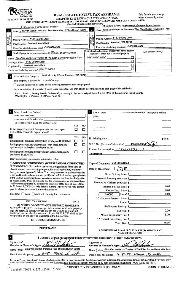 | Mailing Address: | LOIS A BURRECE 924 SW HELLER ST OAK HARBOR, WA 98277 | % Ownership: | 100.0000000000% |