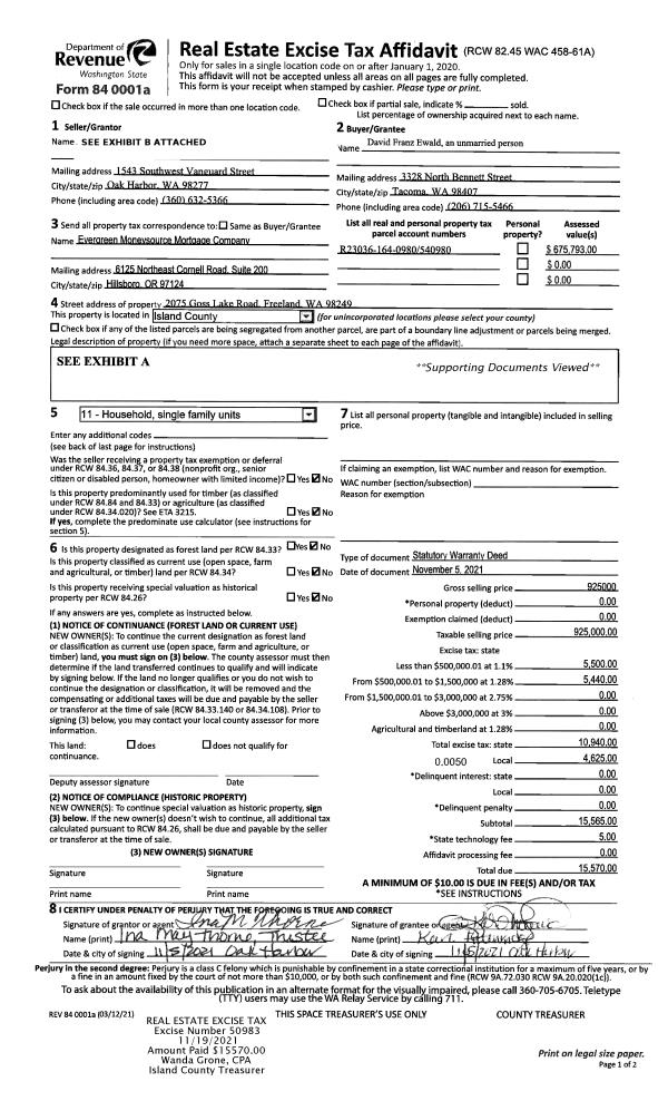 | Mailing Address: | 3783 BELLS LANE LANGLEY, WA 98260 | % Ownership: | 100.0000000000% |