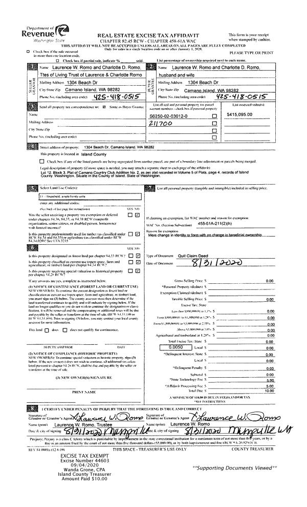| Mailing Address: | CYNTHIA A BOGGIO 3372 HARBOR VIEW DR LANGLEY, WA 98260 | % Ownership: | 100.0000000000% |