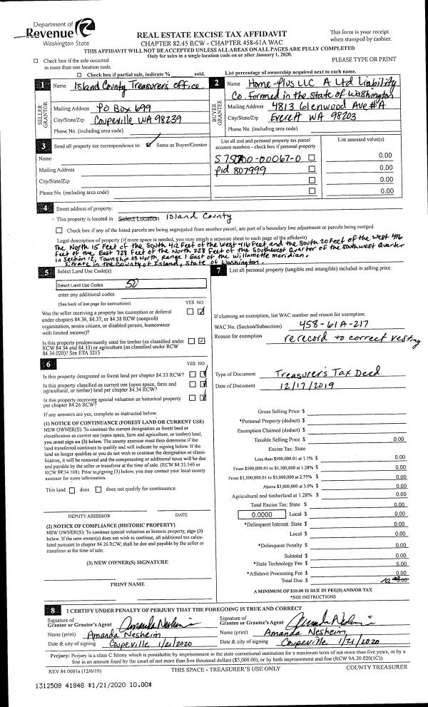 | Tax Area: | 719 - APPRAISER-S Whid Schl Dist, outside Langley, vacant & 50 acres or less | Land Use Code | 99 |