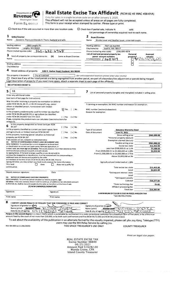 | Tax Area: | 710 - APPRAISER-S Whid Schl Dist, outside Langley, improved & 1 acre or less | Land Use Code | 11 |