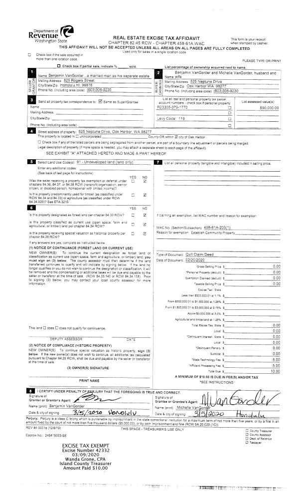 | Tax Area: | 719 - APPRAISER-S Whid Schl Dist, outside Langley, vacant & 50 acres or less | Land Use Code | 99 |