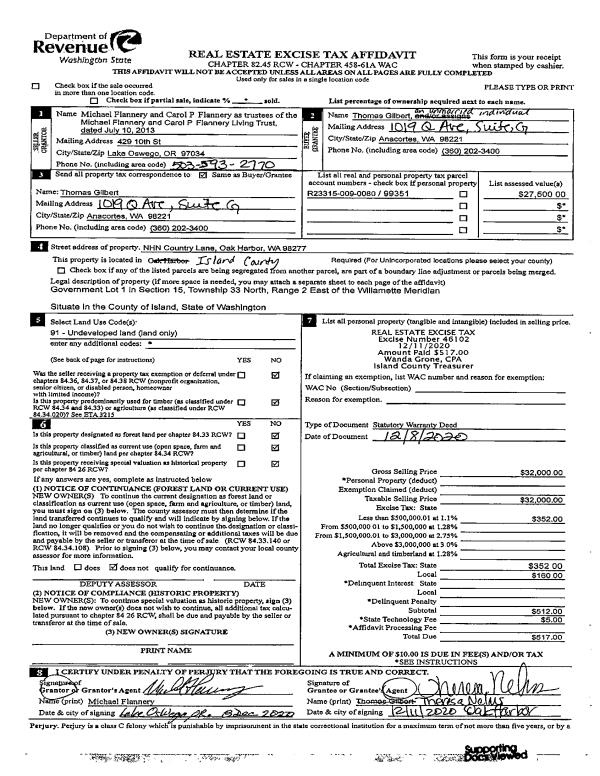 | Tax Area: | 719 - APPRAISER-S Whid Schl Dist, outside Langley, vacant & 50 acres or less | Land Use Code | 99 |