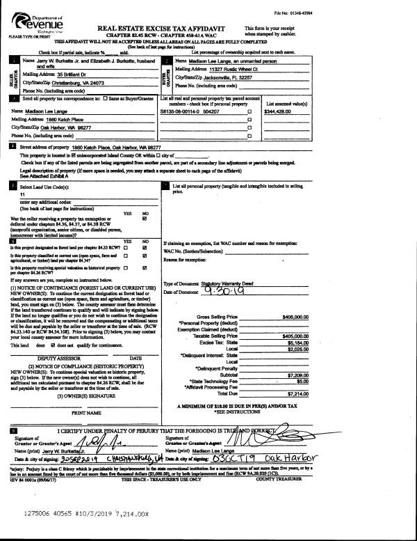 | Tax Area: | 719 - APPRAISER-S Whid Schl Dist, outside Langley, vacant & 50 acres or less | Land Use Code | 99 |
