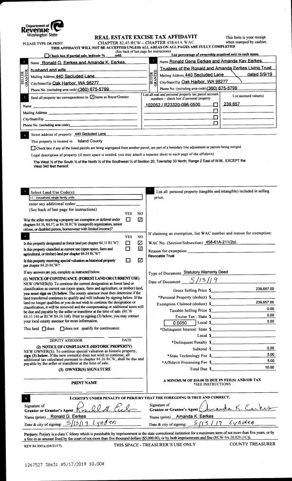 | Mailing Address: | WILLIAM HARR 3535 HOLMES VIEW DR LANGLEY, WA 98260 | % Ownership: | 100.0000000000% |