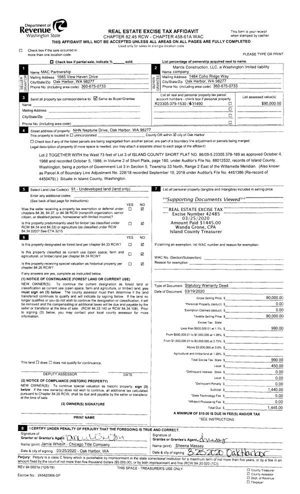 | Tax Area: | 719 - APPRAISER-S Whid Schl Dist, outside Langley, vacant & 50 acres or less | Land Use Code | 99 |