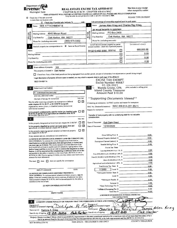 | Mailing Address: | CARNOT JAMES THOMAS 7924 DECATUR AVE CLINTON, WA 98236 | % Ownership: | 100.0000000000% |