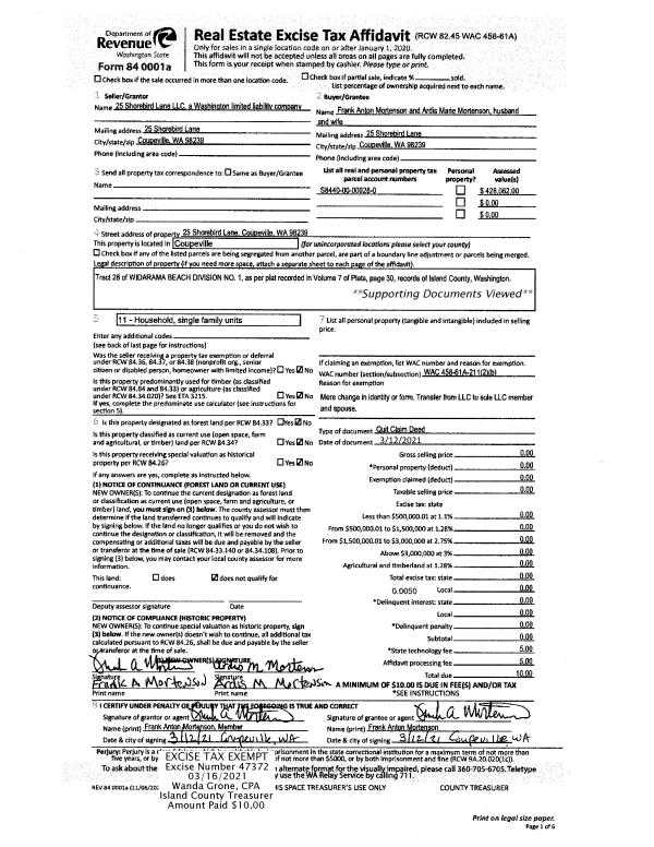 | PORTWHID | Port of S Whidbey GEN | 0.1094540357 | $411,603 | $411,603 | $45.05 | | |