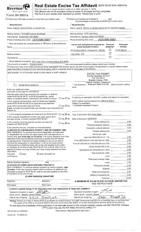 | Mailing Address: | 7910 SAN JUAN AVE CLINTON, WA 98236 | % Ownership: | 100.0000000000% |