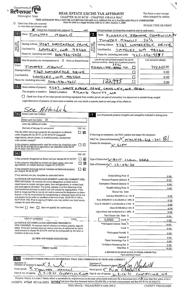 | SWHIDPRMT | P & R S Whidbey GEN | 0.2053334452 | $599,000 | $599,000 | $122.99 | | |