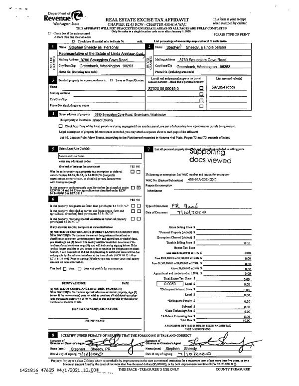 | Mailing Address: | SANDRA GRIMES KELLY RICKETTS DANA WHITNEY 7170 BAILEY RD CLINTON, WA 98236 | % Ownership: | 100.0000000000% |
