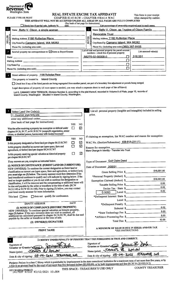 | 6 | 07/01/1991 | QCD | Quit Claim Deed | RIEDEL, PAUL S | PELL, GROVER C | | | $1,500.00 | 12397 | 91010274 |