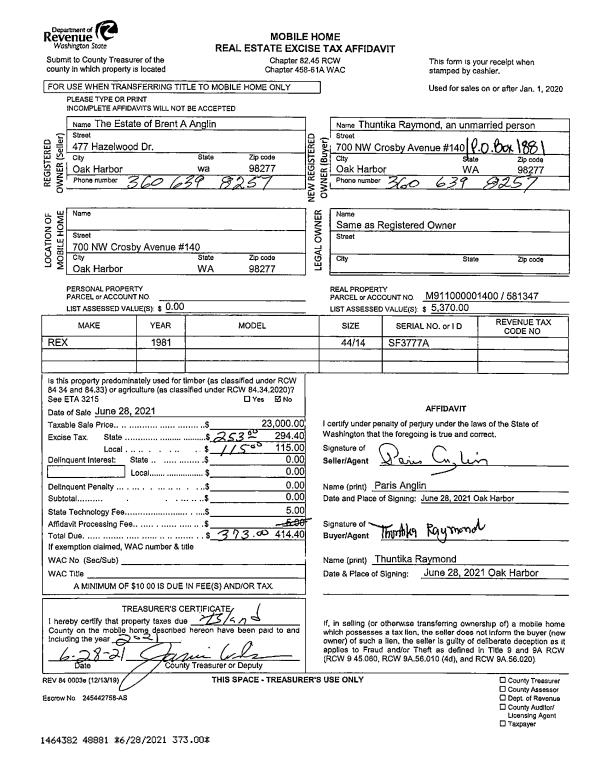 | SWHIDPRBD2 | P & R S Whidbey BOND2 | 0.0138911264 | $12,000 | $12,000 | $0.17 | | |
