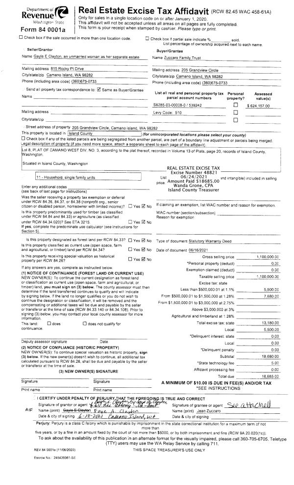 | Mailing Address: | 3742 DRIFTWOOD DR #A CLINTON, WA 98236-9204 | % Ownership: | 100.0000000000% |