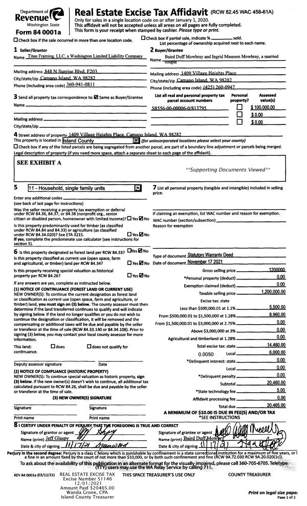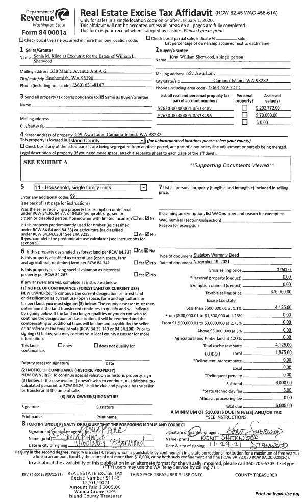 | Mailing Address: | 3661 ORCAS DR CLINTON, WA 98236 | % Ownership: | 100.0000000000% |