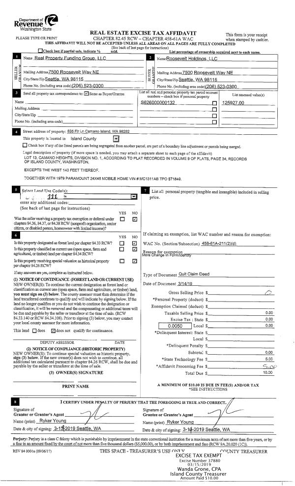 | Mailing Address: | ANTHONY STANLEY ZOARS 8117 LOPEZ DT CLINTON, WA 98236 | % Ownership: | 100.0000000000% |