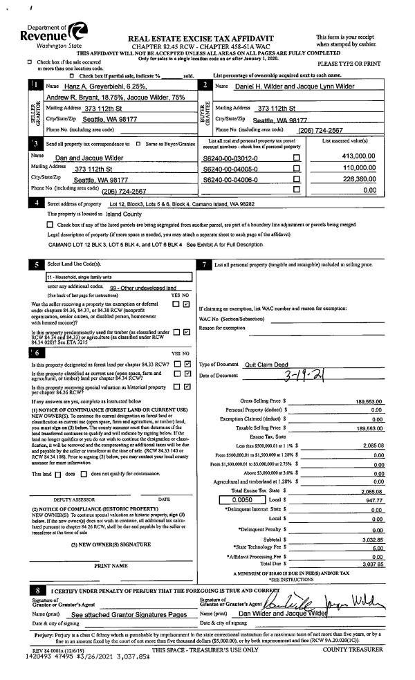 | Mailing Address: | 8119 LOPEZ DR CLINTON, WA 98236-9236 | % Ownership: | 100.0000000000% |