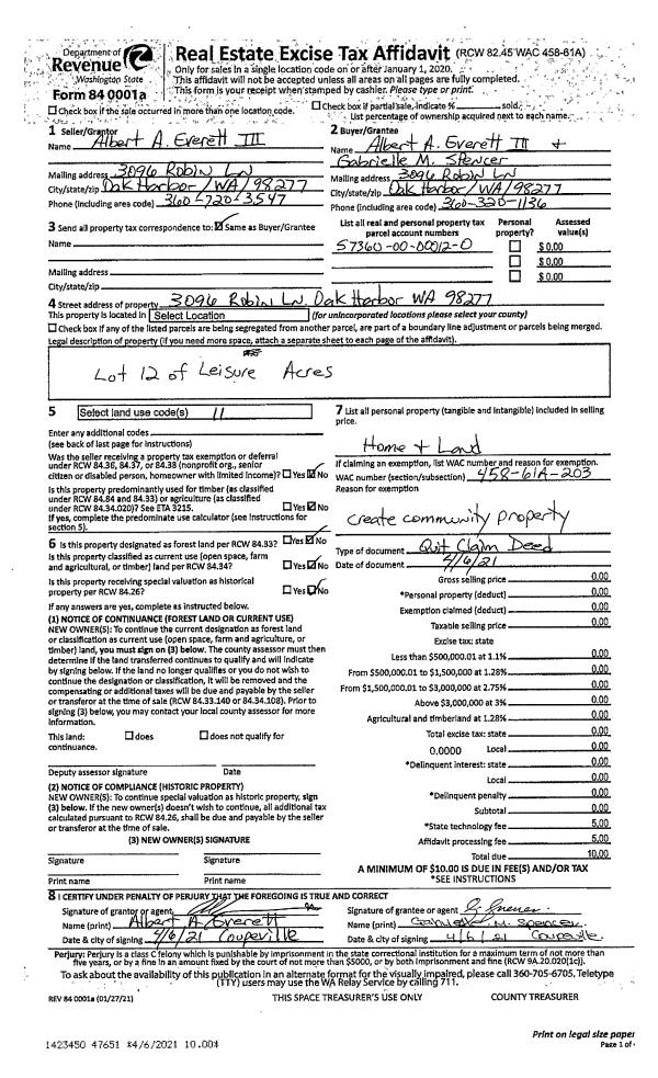 | 1 | 12/29/2020 | QCD | Quit Claim Deed | HART, TYLER | HART, JESSICA | | | $0.00 | 46363 | 4506666 |