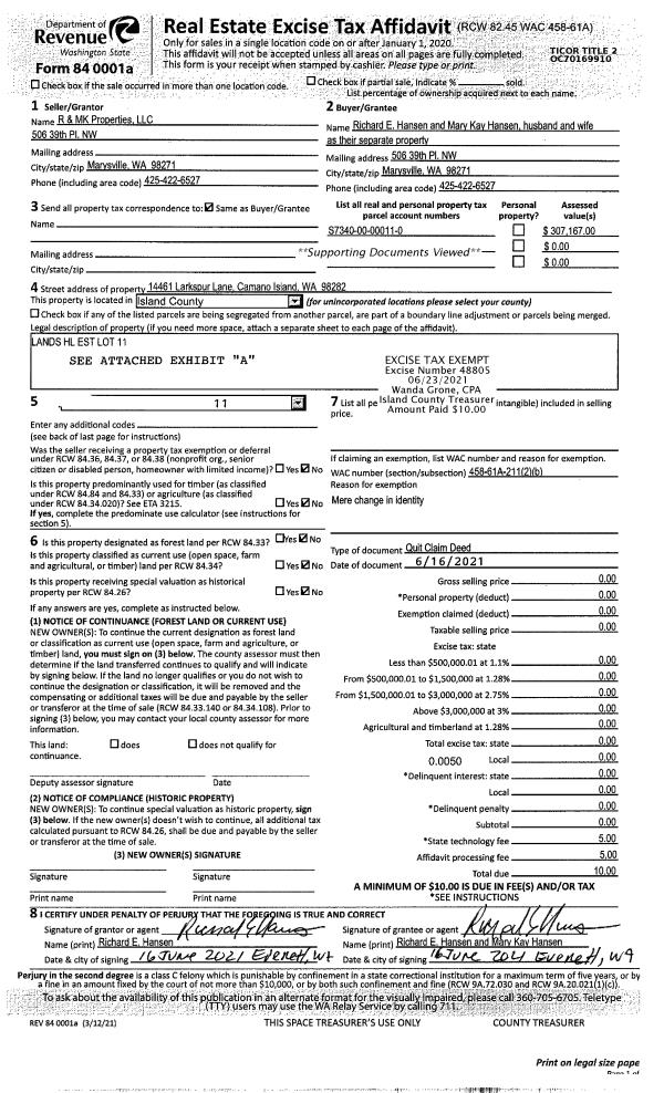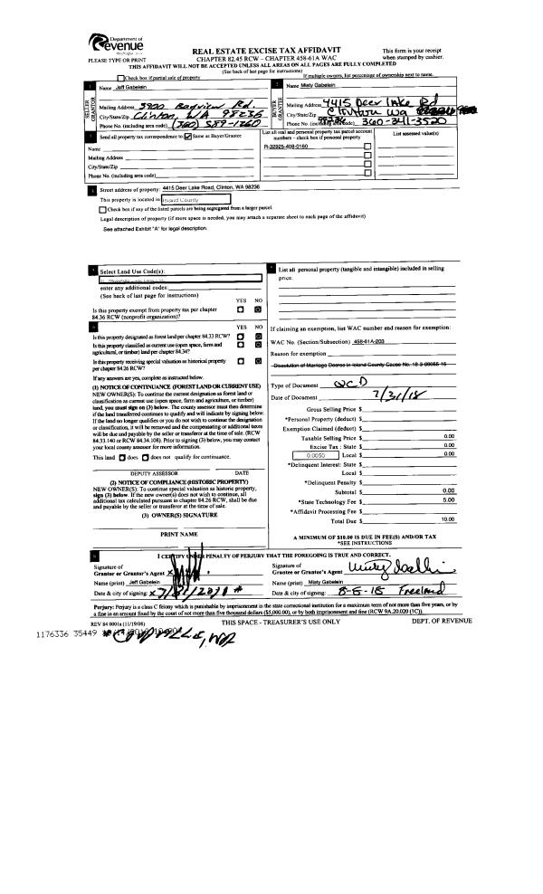 | 2 | 08/01/2011 | TTAXD | Treasurer's Tax Deed | ISLAND COUNTY TAX TITLE | ZAHN, KEVIN | | | $3,757.00 | 5155 | 4299149 |